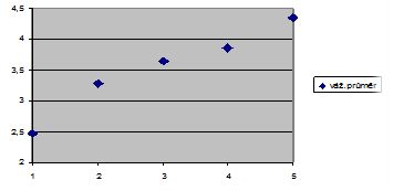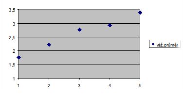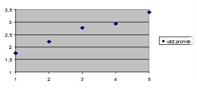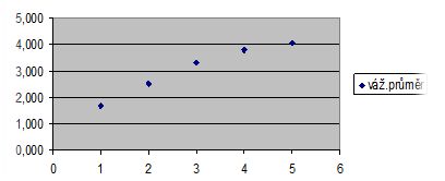 Stoupající trend hodnot je zřetelný z následujících grafických vyjádření váženého průměru obou proměnných.