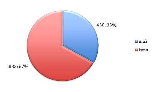 Výzkumný soubor tvořili žáci z pěti středních škol z Olomouckého kraje. Školy byly vybrány záměrně; jedná se o školy, ze kterých nejčastěji přicházejí studenti k přijímacímu řízení na obor Sociální pedagogika. Vzhledem k tomu, že dotazníky byly distribuovány osobně 1 , byla jejich návratnost 100%. Z 1328 vrácených dotazníků však bylo možné použít 1323. Základní soubor (n= 1323) tvořilo 438 mužů a 885 žen.