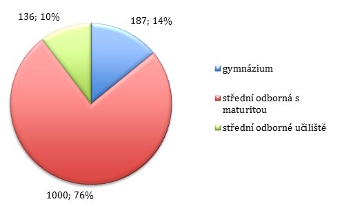 Do výzkumu byly zařazeny tři typy středních škol (gymnázium, střední odborná škola a střední odborné učiliště). Ve všech třech typech škol studenti ukončují studium maturitní zkouškou. Nejvíce respondentů 76 % tvořili studenti ze středních odborných škol (střední pedagogická škola, střední zdravotnická škola, pedagogické lyceum). Nepoměr zastoupených škol je dána záměrným výběrem a odpovídá poměru, v jakém se hlásí uchazeči o studium na obor Sociální pedagogika. Vzhledem k tomu, že jedním z cílů studie bylo zjistit vztah studentů, kteří se hlásí na obor Sociální pedagogika, ke vzdělání, není nutné považovat nevyvážený poměr zastoupených škol za limitující, ale současně není možné výsledky výzkumu zobecnit a vztáhnout je na současnou populaci středoškoláků.