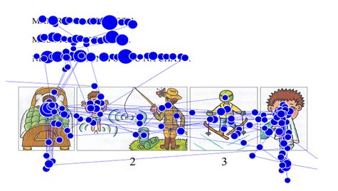 60. Snímek 1 slouží pro ilustraci, jak byl upraven testový materiál na jednom ze snímků. Text byl rozmístěný na třech řádcích a obrázky seřazené pod ním. Zároveň jsou doloženy oční pohyby jednoho z respondentů (viz také Snímek 3 a 4).