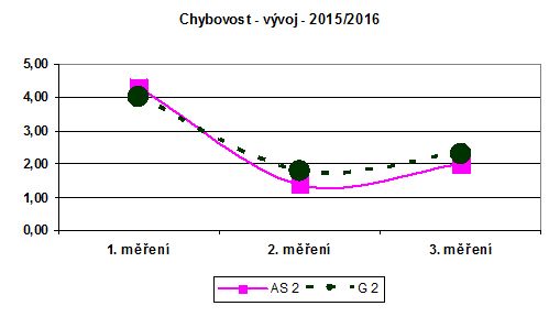 Jedinci AS metody ve školním roce 2015/2016 učinili při čtení průměrně 4,3 chyby a žáci G metody 4,0 chyby, mezi nimi jednoznačně převážily Z chyby (zkomoleniny) a nedostatky typu Ne chyb, tj. slova či věty, které žáci nezvládli z hlediska formy vůbec dekódovat (provést syntézu). Obdobný typ chyb jsme zaregistrovali u obou skupin žáků při měření v listopadu 2014, ti už chybovali méně často. Toto konstatování platí zejména pro děti vyučované G metodou, neboť u nich jsme našli průměrně 1,9 chyby na žáka. Horšího výsledku dosáhly děti AS metody, a to 3,7 chyby na žáka. Jednoznačně nejhorší výsledek byl zaznamenán při listopadovém měření v roce 2016. Zjistili jsme, že 10 žáků ze 12 měřených hláskovalo nahlas a nepokoušelo se o syntézu hlásek či o vyslabikování slova. Zbylí 2 žáci se místy o slabikování pokusili, 1 z nich četl písmena nahlas a místy i chybně, druhý si hlásky jedné slabiky přečetl v duchu, což dokládala jeho mluvidla, a slabiky se snažil vyslovit nahlas. Průběh měření a jeho výsledky s průměrem 11,1 chyby na žáka bohužel doložily nevhodné uplatnění metodiky užité metody. 39 Z uvedených údajů plyne, že žáci AS metody byli při počátečním měření v každém sledovaném roce horší než žáci G metody (viz Tabulka 1).