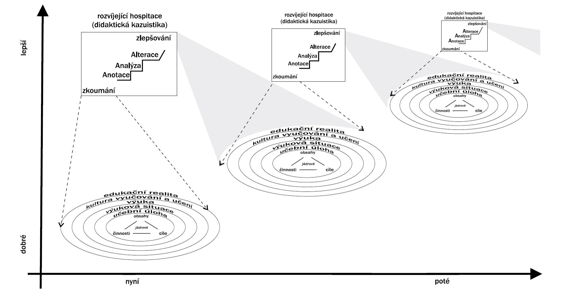 Opíráme se o koncepci obsahově zaměřeného přístupu ke zkoumání a zlepšování výuky (viz Obr. č. 2). Prezentované schéma nastiňuje, že pro zkvalitňování edukačního procesu je důležité vycházet z analýzy obsahové transformace ve výuce. Nejprve je potřeba porozumět procesu, ve kterém dochází k naplňování cílů výuky. Přitom se vzájemně doplňuje deduktivní náhled na pojmovou strukturu obsahu s induktivním rozborem konkrétních postupů učitele a dětí. T. Janík a J. Slavík s výzkumným týmem a spoluautory rozsáhlé studie (2016) hodnotí, že na podkladě takto zjednaného porozumění lze posuzovat kvalitu jednotlivých situací výuky a zvažovat návrhy na zlepšení.