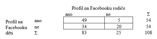 HA Mezi četností Facebookového profilu dětí a rodičů je statisticky významná souvislost.