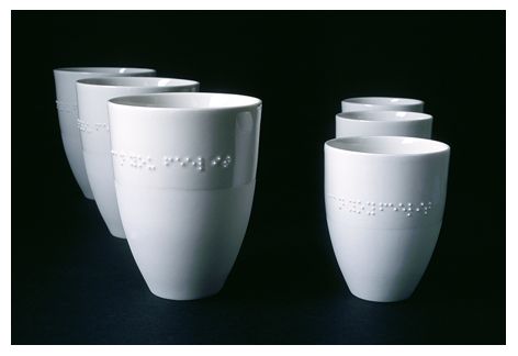 Ähnlich verfährt auch die niederländische Designerin Simone van Bakel mit der Brailleschrift, die insbesondere mit Keramik und Porzellan arbeitet. In die Geschirrkollektion mit dem Namen Can you feel it hat sie die Brailleschrift mit eben diesem Text eingesetzt. Sie zeigt dadurch die Spiellust und Ideenfülle im Design und vermittelt gleichzeitig die Information mithilfe der Brailleschrift.