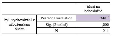 Další signifikantní vztahy vyplynul mezi lidmi, kteří se pokládají za věřící a těmi, kteří byli vychováváni v náboženském duchu. Mezi některými vztahy jsou silnější i slabší signifikantní vztahy. Lidé, kteří se pokládají za věřící, více nesouhlasí s umělým oplodněním než lidé, kteří byli vychováváni v náboženském duchu. S řízenou interrupcí více nesouhlasí lidé, kteří se pokládají za věřící než lidé, kteří byli vychováváni v náboženském duchu. Také s rozvody více nesouhlasí ti, kteří se pokládají za věřící než lidé, kteří byli vychováváni v náboženském duchu. Užívání drog je přijatelné pro lidi, kteří byli vychováváni v náboženském duchu ale lidé, kteří se pokládají za věřící, s tímto nesouhlasí. Prostituce je nepřípustná pro osoby, které se pokládají za věřící, ale lidi, kteří byli vychováváni v náboženském duchu, tak to tak nevnímají. Lidé, kteří se vnímají za věřící, tak nesouhlasí s provozováním příležitostného sexu. Méně významně tento akt vnímají lidé, kteří byli vychováváni v náboženském duchu.