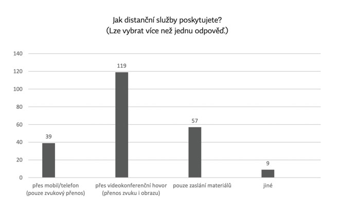 V souvislosti s modely poskytování jsme se tázali respondentů, jakým způsobem je u nich telepractice poskytována. Na výběr měli respondenti 3 možnosti, přičemž mohli vybrat jejich libovolný počet. Respondentům byl dán prostor pro vlastní odpovědi v případě, že se ani s jednou z odpovědí neztotožňovali. Z analýzy dat vyplynulo, že nejvíce logopedi využívají možnosti přenosu přes videokonferenční hovor (92,2 % respondentů), kde je kromě zvuku dostupný i přenos obrazu. Druhým způsobem telepractice bylo zvoleno zasílání materiálů e-mailem (44,2 % respondentů), někteří z respondentů pak doplnili, že šlo o audionahrávky či instruktážní videa. Pouze zvukový přenos vybralo 30,2 % respondentů a poslední možnost „jiné“ 7,2 %.