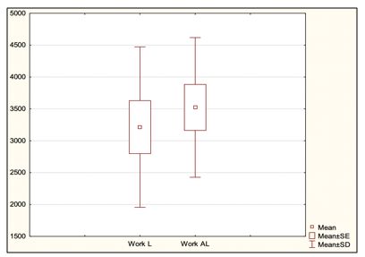 In the given section, we focused on examining changes in students' behavior in the area of work during pandemic measures with distance learning compared to students' behavior during in-person learning after the pandemic measures ended. We considered preparation for teaching as the area of work. We calculated the average time that students spent on work in both observed conditions. We expressed the calculated average as a percentage. During the pandemic measures, students spent 34.09% of the total observed time on work. After the pandemic measures ended, students spent 34.89% of the total observed time on work. We did not find a statistically significant difference (p = 0.5146) in the time spent on work during the pandemic measures and after their cancellation (Graph 3).