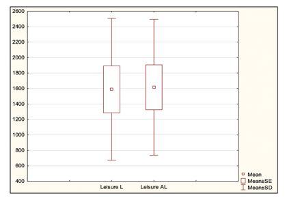 In this section, we investigated the change in students' leisure behaviour during the distance learning with pandemic measures compared to students' behaviour during the face-to-face, post-pandemic pandemic measures. We calculated the average amount of time that students spent on leisure in these two conditions studied. We expressed the calculated average as a percentage. During the pandemic measures, students spent 16.84% of the total observed time on leisure. After the lifting of the pandemic measures, students devoted 5.23% of the total observed time to leisure. There was no statistically significant difference (p = 0.5939) in time spent on leisure during and after the pandemic measures were lifted (Graph 5).
